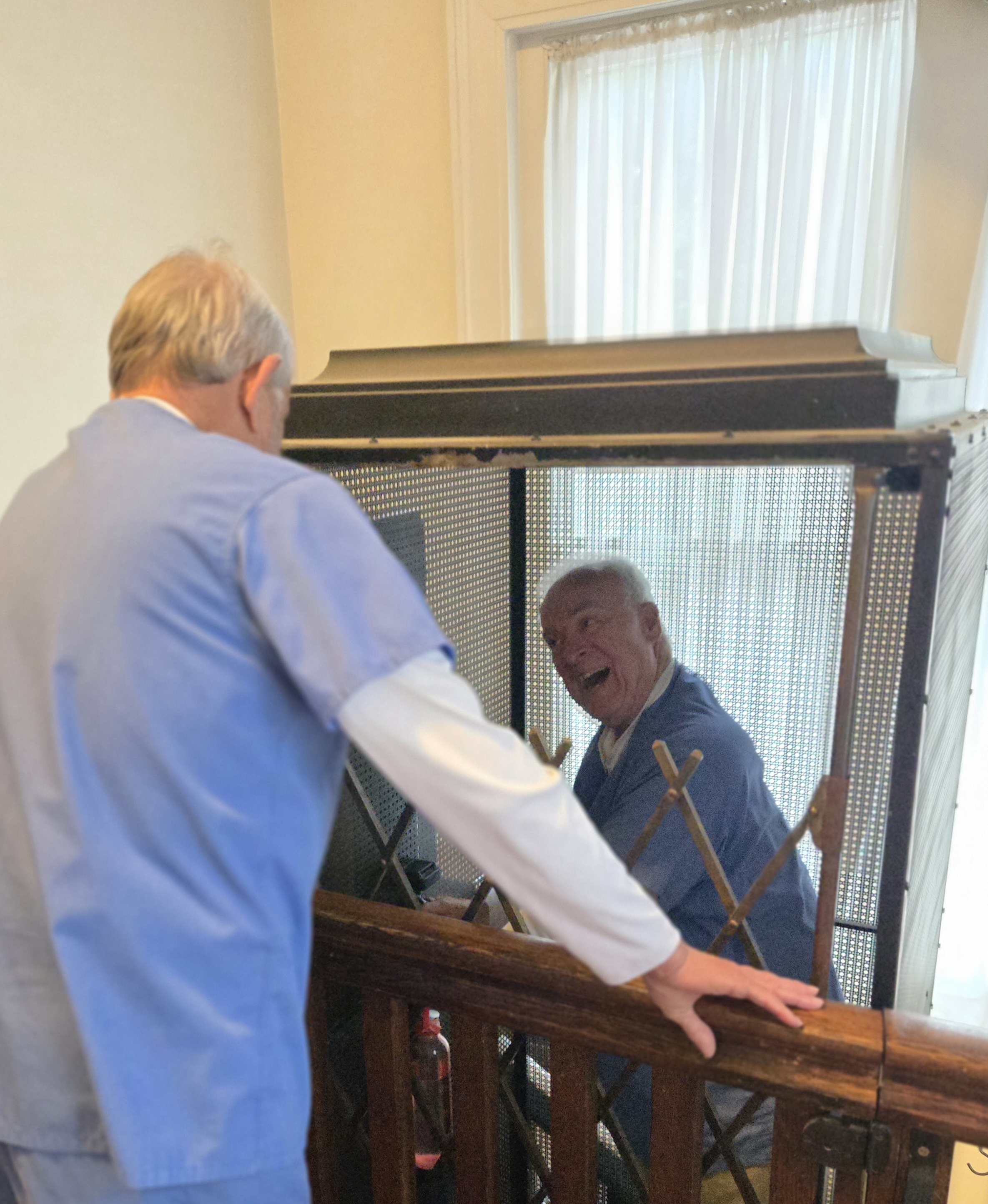A bit of human interest during this visit surrounded our tenor singer (whose mobility was limited) and his meeting with an antique elevator.