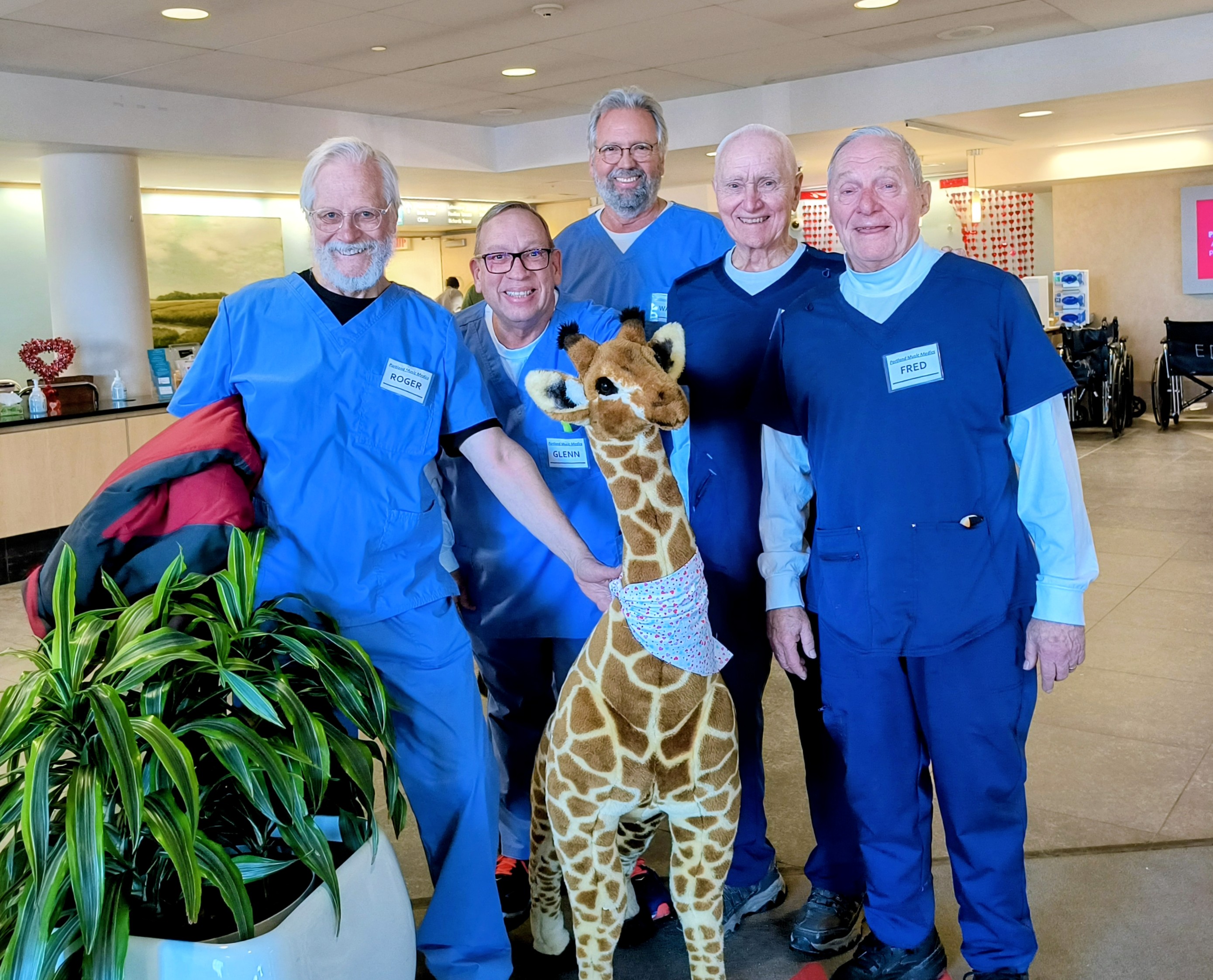 November saw the men of the HarmonyTown Chorus Music Medics kick their Music Medics program back into business! Donning our scrubs and stethoscopes, we serenaded the patients at St. Mary Mercy Hospital, in Livonia, Michigan, on Sunday the 7th and 14th of November. Armed with masks and Covid Vaccine proofs, HarmonyTown had 10 different men participate, and although St. Mary’s doesn’t have a pediatric ward, they were still able to use many of the program songs to spread cheer among the patients. The warm reactions and support to “You’ve Got a Friend in Me” and “Zippity Doo Dah” were outstanding. St. Mary’s HR specialist, Cyndi Niva, guided the Medics around the hospital for nearly two hours each time they performed. To say it was rewarding would be an understatement!